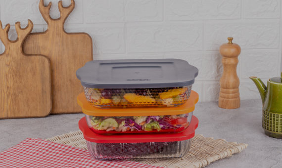 Optik Desenli 3’lü Takım Saklama KabıBorosilikat Cam Saklama Kapları Borart saklama kapları, aynı üstün cam teknolojisiyle üretilmiş olup, gıdaların tazeliğini uzun süre koruyacak şekilde tasarlanmıştır. Isıya ve soğuğa dayanıklı yapıları sayesinde bu kaplar, hem buzdolabında hem mikrodalgada hem de fırında güvenle kullanılabilir.