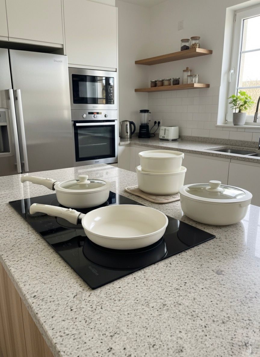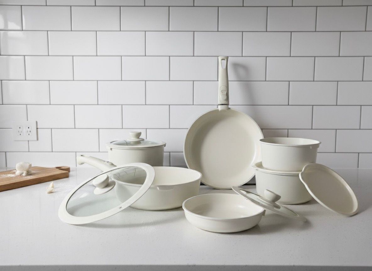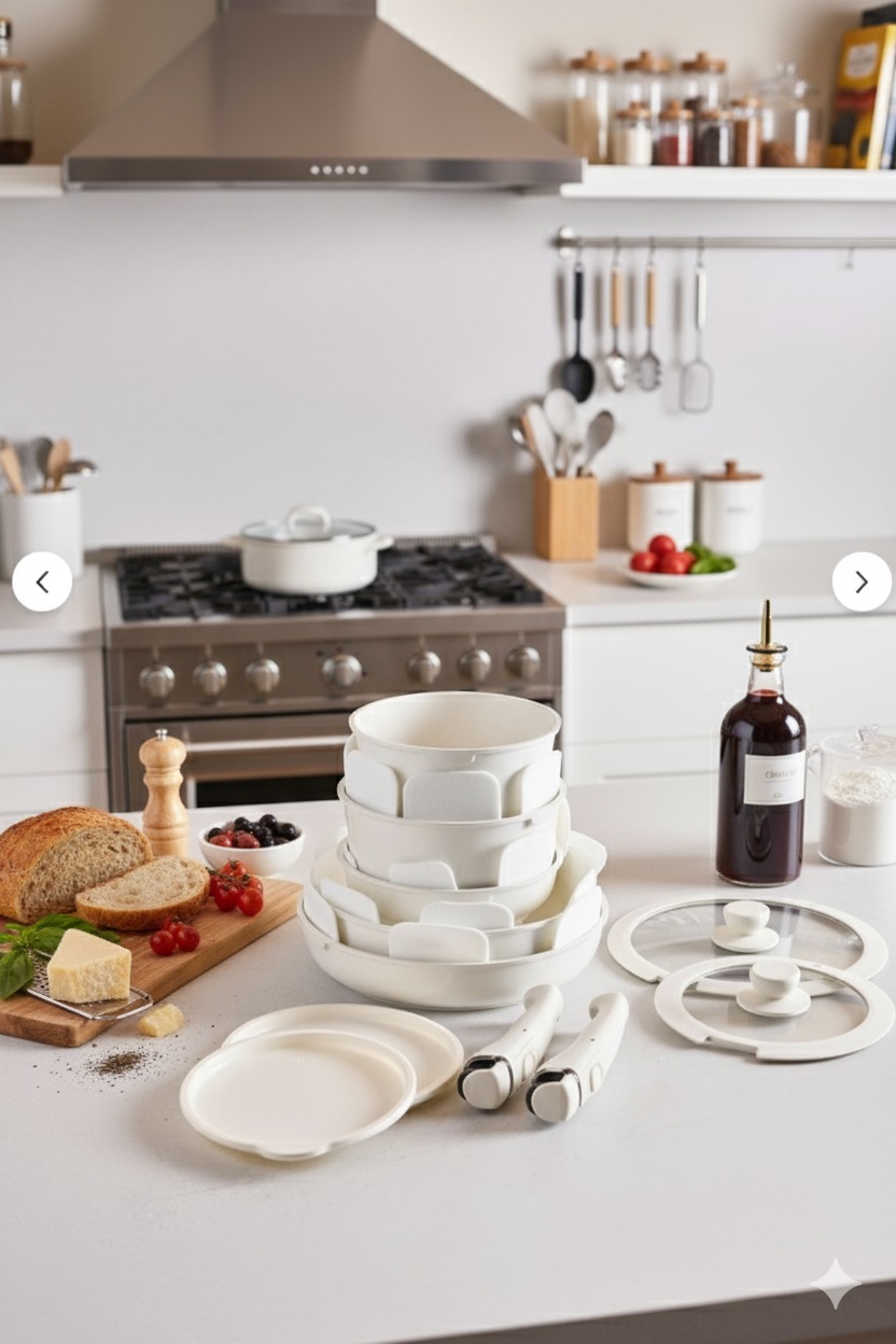 Beta 15 Parça Seramik Döküm Tencere Tava Seti Beige Tak-Çıkar Saplı – İndüksiyon Uyumlu, Bej Renk