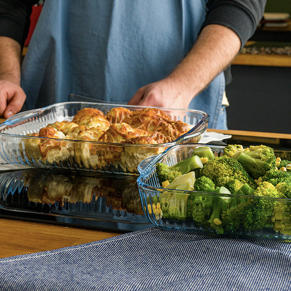 • Kare cam kaplar, lazanya, kek, makarna gibi tariflerin yanı sıra tatlı ve porsiyonlu yemekler için de ideal kullanım sağlar.