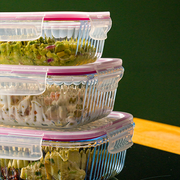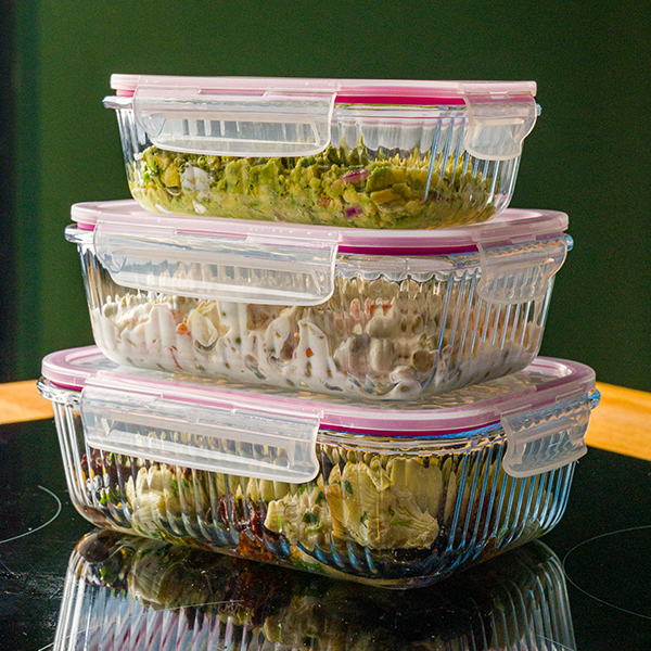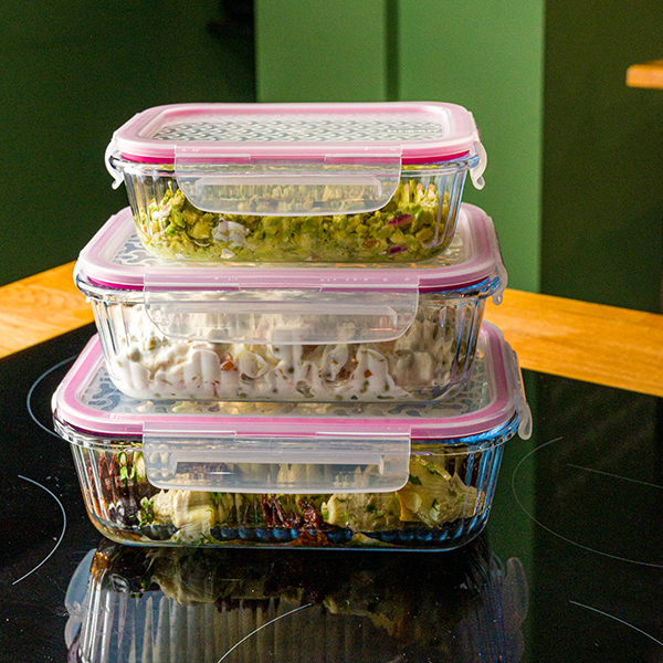 Sızdırmaz kapaklı tasarımları, taşıma ve saklama esnasında maksimum güvenlik sağlar. Şeffaf cam gövdeleri, içeriği kolayca görmenizi sağlarken; koku, leke veya tat transferi yapmaz.