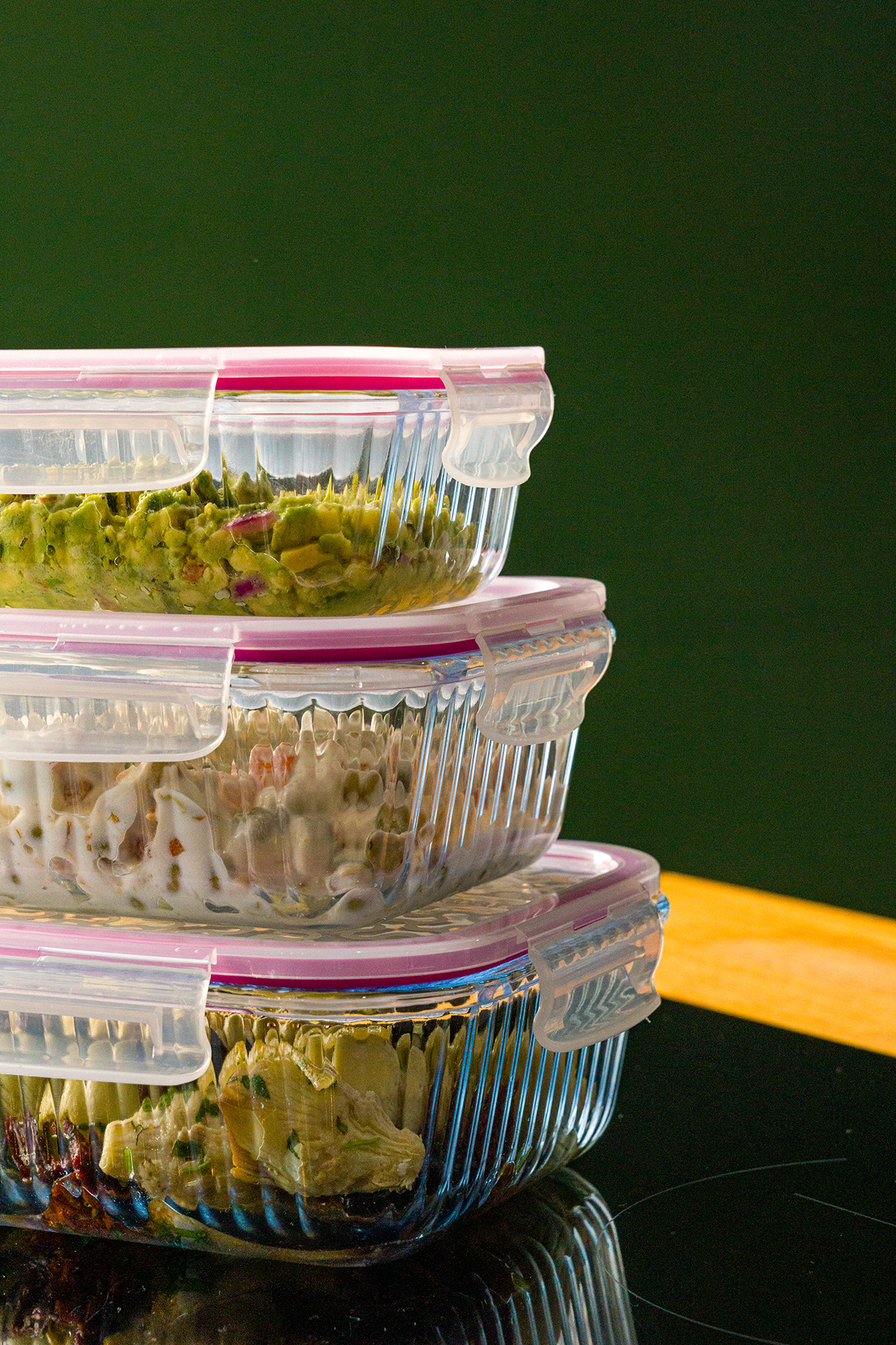 Sızdırmaz kapaklı tasarımları, taşıma ve saklama esnasında maksimum güvenlik sağlar. Şeffaf cam gövdeleri, içeriği kolayca görmenizi sağlarken; koku, leke veya tat transferi yapmaz.