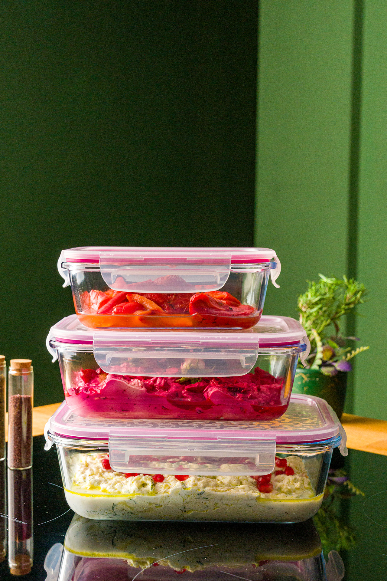 Sızdırmaz kapaklı tasarımları, taşıma ve saklama esnasında maksimum güvenlik sağlar. Şeffaf cam gövdeleri, içeriği kolayca görmenizi sağlarken; koku, leke veya tat transferi yapmaz.