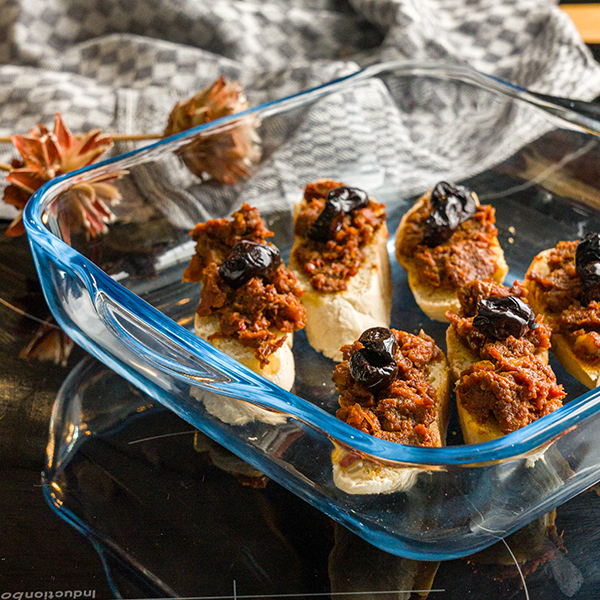 - Kare cam kaplar, lazanya, kek, makarna gibi tariflerin yanı sıra tatlı ve porsiyonlu yemekler için de ideal kullanım sağlar.